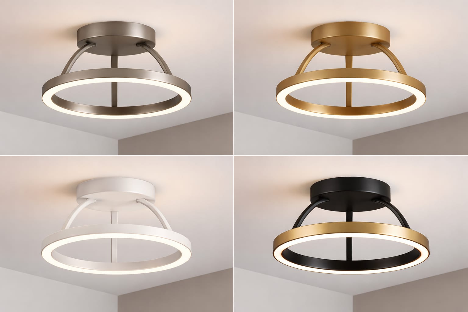 Lámpara de techo moderna con aro LED y diseño minimalista. Elegancia y luz cálida para tu hogar.