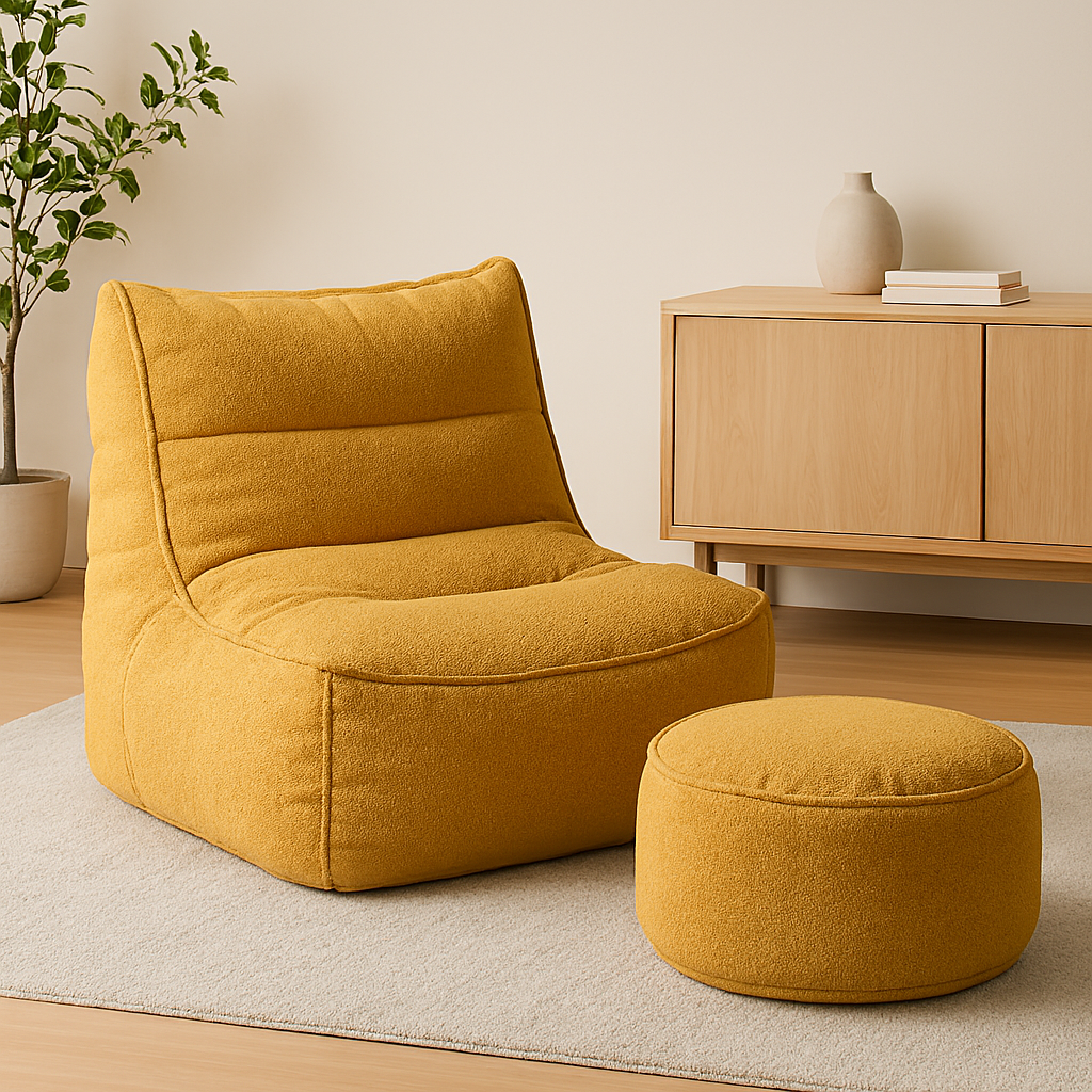 Sumá estilo y confort a tu living con este moderno puff tipo sillón acompañado por un ottoman a juego. Su diseño ergonómico y minimalista, tapizado en tela tipo corderoy color mostaza, lo convierte en el protagonista ideal de cualquier espacio. La estructura acolchada ofrece una experiencia de descanso envolvente, perfecta para leer, relajarte o disfrutar de una charla. El ottoman complementa el conjunto, permitiendo apoyar los pies o usarlo como asiento adicional. Fabricado con materiales resistentes y relleno de alta densidad, este set combina estética contemporánea con funcionalidad. Ideal para ambientes modernos, juveniles o espacios de relax.